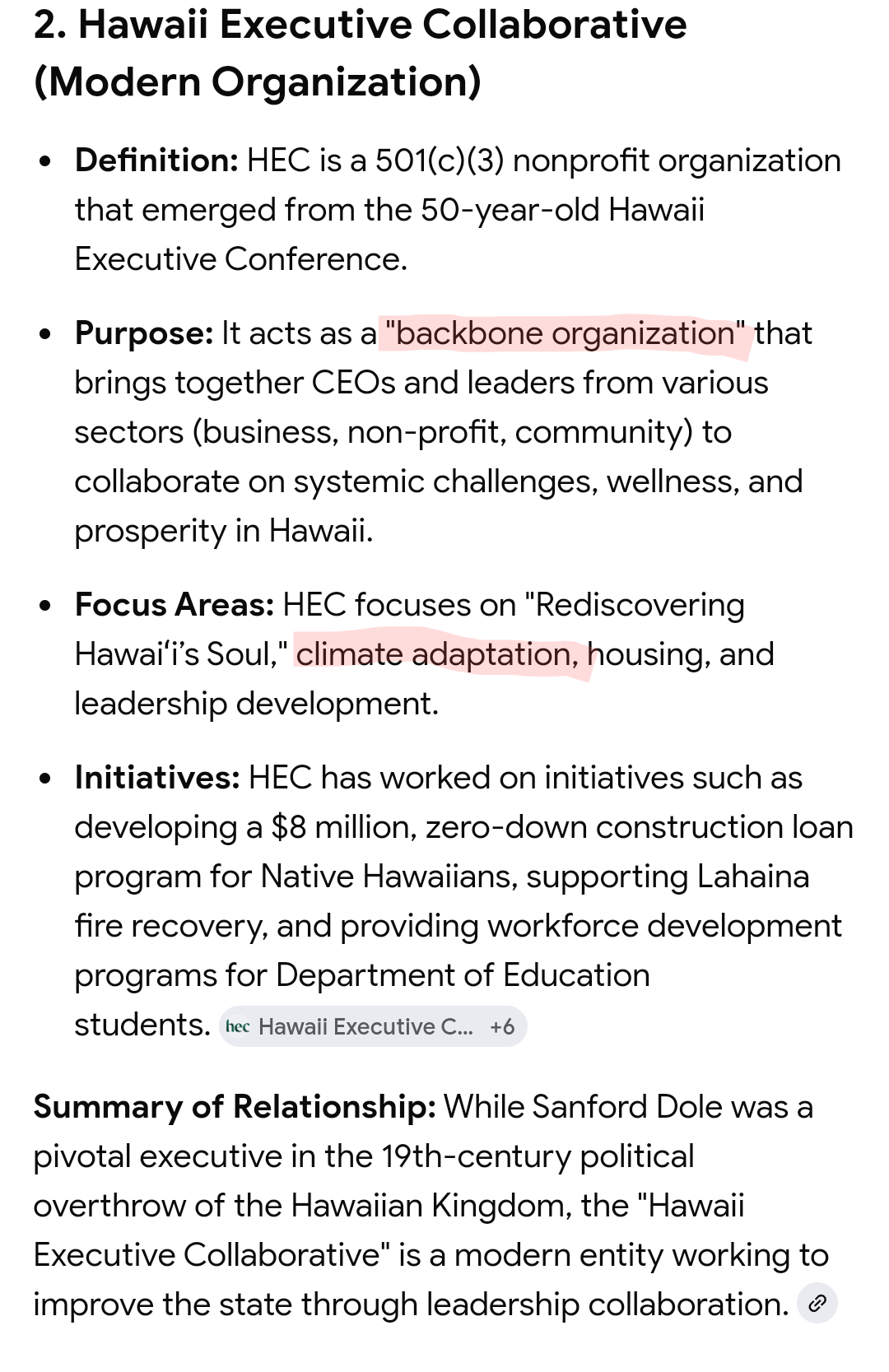 The effort made by the Hawaii Executive Collaborative to invest in education (including very early education) will ensure that future generations of Hawaiians clearly understand what yesterday's (“today's problems” ☝️) problems were (are) and what was done to deal with those problems (probably what was done by the gods or by “nature” to vindicated the Hawaiian natives from colonial oppression…