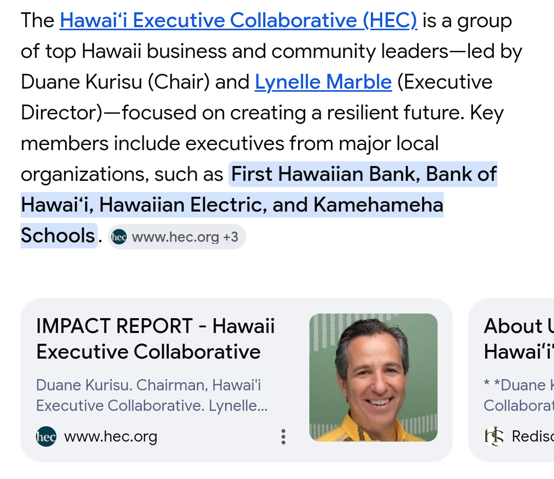 The HEC is the insiders club and of course the insiders include HECO which is a subsidiary of HEI. Plus banks are in the club too, not just the HEI owned former savings and loan from salt lake City called “American Savings Bank”, other banks too.